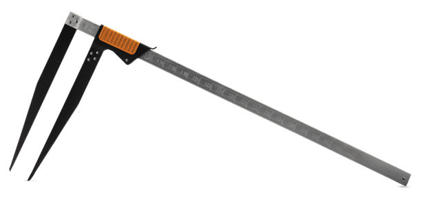 De meetklem van Husqvarna is 46 cm. De klem heeft een tabel met cilindervolumes, centimetermarkering aan 2 zijden.